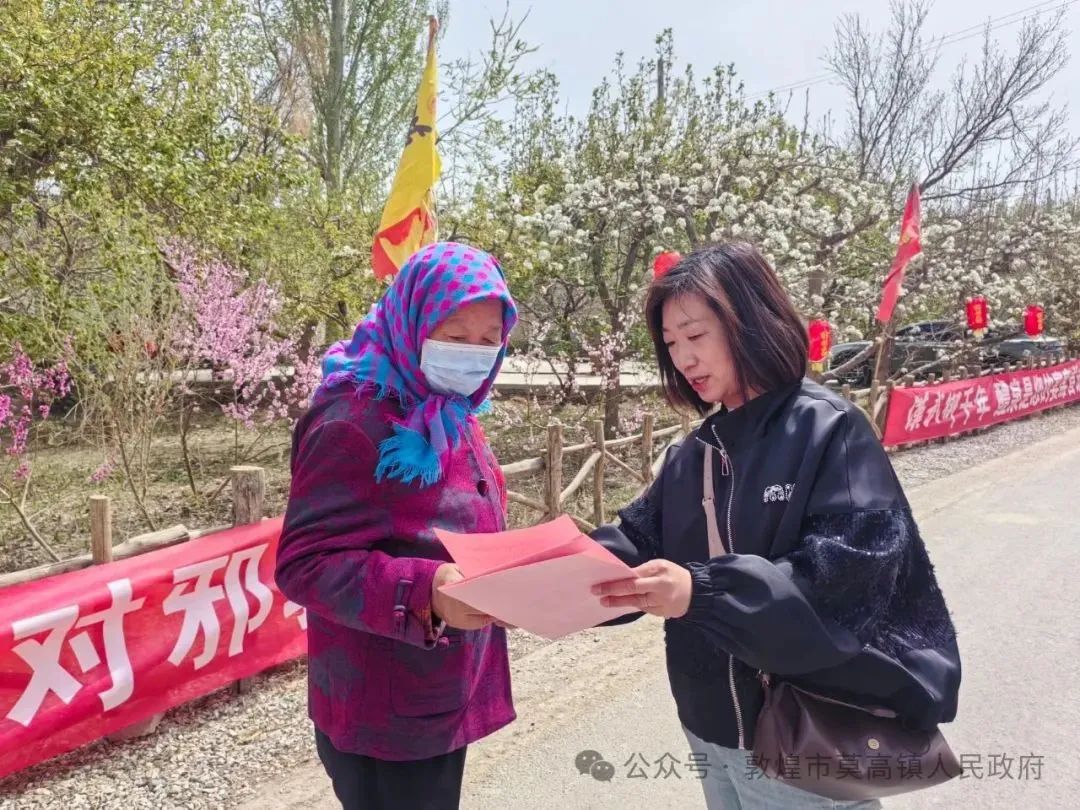 政策宣传全覆盖,文明理念入人心。敦煌市莫高镇以村组为单位,成立多个宣传小组,通过“线上+线下”相结合的方式,开展全方位、多角度的殡葬改革政策宣传。线上利用微信公众号、短视频、村民微信交流群等平台,发布殡葬改革政策解读、文明祭祀倡议短视频等内容;线下通过张贴宣传标语、悬挂横幅、入户走访、发放移风易俗倡议书以及播放广播、喇叭等形式,向群众广泛宣传殡葬改革政策。镇村干部用通俗易懂的语言向村民详细解读政策内容,耐心讲解传统殡葬方式存在的弊端,倡导文明节俭、生态环保的殡葬理念。